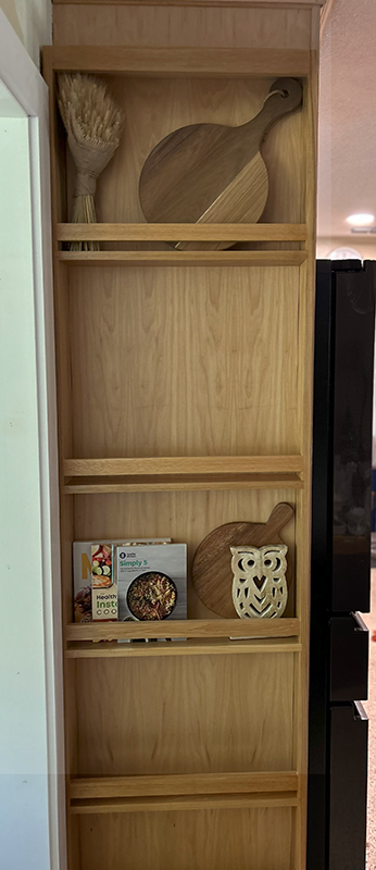 Ole Lare loves to create floating shelves in any size and wood type. All shelving is custom ordered to your specifications. Floating kitchen shelves are a versatile and elegant addition that enhance both the style and functionality of the space. Keep your counters clear and showcase your favorite pottery, plants, or mementos.